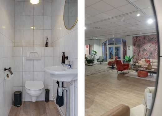 Het pand maakt deel uit van een modern en representatief winkelcomplex in het centrum van Laren. De locatie is al jarenlang in gebruik als prominente winkelplek en profiteert van de sterke regionale aantrekkingskracht van Laren als winkel- en recreatiegebied.